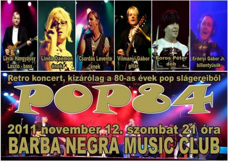 "A 80’-as évek világhírű zenéi nem csak nekünk slágerek!"- POP84 koncert a Barba Negrában!