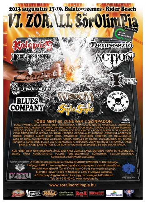 Végleges lett a Zorall nyaralás csapata végre, és a jegyek is kaphatók már a nyár egyik legrockosabbnak ígérkező Balaton-parti fesztiváljára. A már hagyománynak számító Zorall Sörolimpia több mint hatvan fellépője igen komolyan készül a különleges szabadságra. Élvonalban a Depresszió, Rómeó Vérzik, az Action és a Blues Company, Wisdom, Kalapács, nem mellékesen pedig az újjáéledt Sing Sing, valamint a fesztivál hatéves történetének legelső külföldi fellépője a svéd melodic-death banda, a The Embodied érkezik augusztusra a tópartra. Na meg persze rengetegen mások, rock- és metálcsapatok, tribute-ök és természetesen a főszervező Zorall is megmozgatja majd a népet.