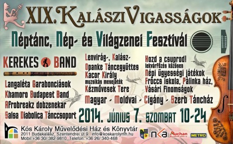 A nagy hagyományú Kalászi Vigasságok idén is olyan programmal kedveskedik közönségének, amely egyszerre folyatója a majd' két évtizedes hagyománynak és igyekszik új utakat is keresni: repertoárjában az autentikus népzenét és néptáncot bemutató előadások éppúgy szerepelnek (Lenvirág és Kalász Táncegyüttes, Opanke Kud, Khamoro Budapest Band), mint az új utakat kereső etno- és világzenei produkciók (Afrobreakz, Kerekes Band, Salsa Diabolica Tánccsoport, Évkerék Társulat)