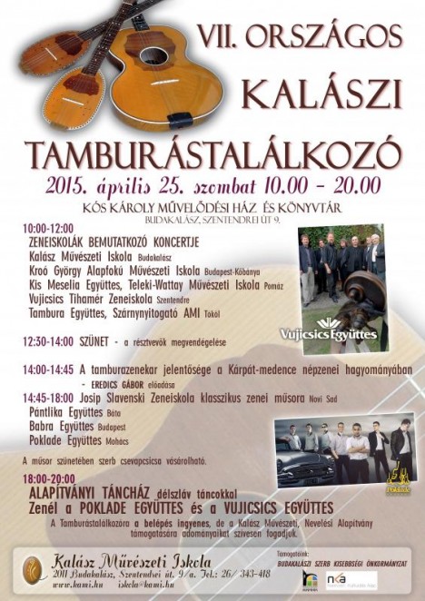 április 25-én, szombaton 10-20 óráig a Bálteremben, melyen fellépnek a környékbeli iskolák dél-szláv