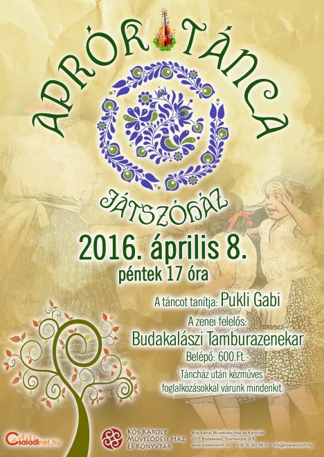 A táncot tanítja Pukli Gabi, a talpalávalót a Budakalászi Tamburazenekar húzza. A táncház után kézműves foglalkozással várunk mindenkit!
