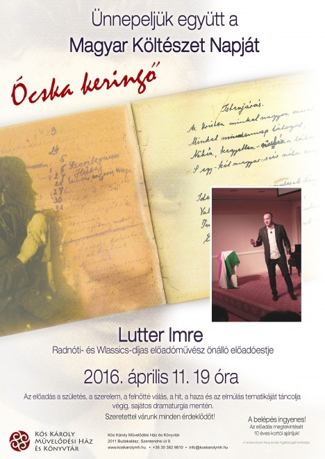Budakalász idén is hangulatos programmal, Lutter Imre, Wlassics- és Radnóti-díjas előadóművész Ócska keringő című önálló estjével ünnepli a Magyar Költészet Napját!