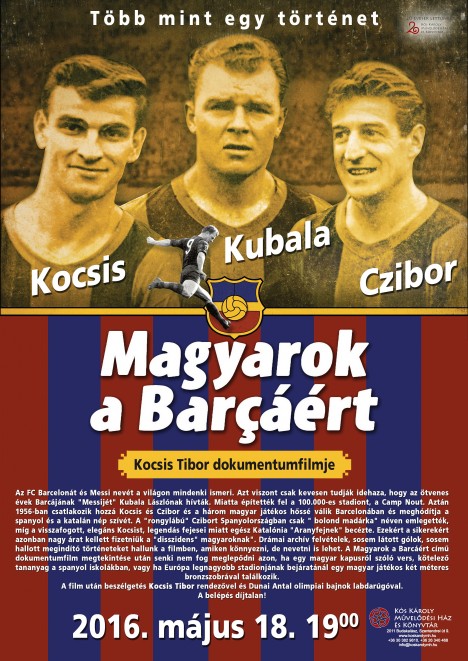 Hangolj magyar futballegendákkal az EB-re! A "Magyarok a Barcáért" film bemutatója Budakalászon!