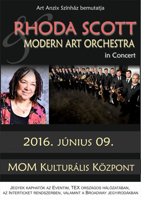 A világhírű orgona-virtuóz énekes Rhoda Scott kapcsolata a Modern Art Orchestra-val immár rendszeresnek mondható, hiszen 2014-ben két közös koncerttel is megörvendeztették a budapesti közönséget. Az amerikai keleti parti gospel zenéjének egyik legautentikusabb képviselője, a „mezítlábas grófnő” idén nyáron újra a magyar big band vendége, hogy a jazz örökzöldek és saját szerzemények megszólaltatásával ismét elkápráztassa hallgatóit.