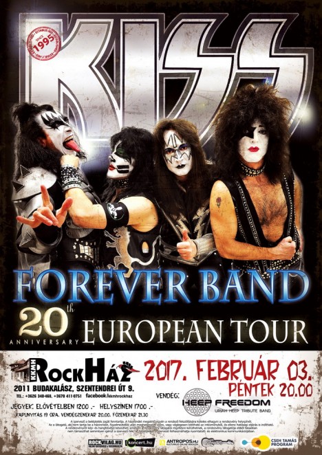 Lassan már hagyománynak számít, hogy az évet a Kiss Forever Band nyitja meg a budakalászi RockHázban. Az Európa-szerte elismert KISS tiszteletzenekar idén már negyedik alkalommal hozza el egyedülálló showját, és a ’70-es, ’80-as évek felejthetetlen rock n’ roll hangulatát a városszéli rockklubba. Az idén már 22 éves, elismert hazai zenészekből álló csapat a világhírű legenda, a KISS számait dolgozza fel, csaknem az eredeti feelinget interpretálva a mai hazai és európai közönségnek. Míg az original amerikai csapat ebben az évben már 44 évét tölti, leghíresebb tribute zenekaruk, a Kiss Forever Band sikere is 1995-óta töretlen. Bizonyítja ezt a nem kevés fellépés, és a hatalmas, KISS rajongó tömeg, akik lépten-nyomon követik az együttest. A fergeteges előadásnak pedig most bárki tanúja lehet, aki a RockHázba látogat február 3-án, pénteken. A hangulatot egy másik rockikon emlékét felelevenítve a Heep Freedom (Uriah Heep Tribute Band) forrósítja majd.