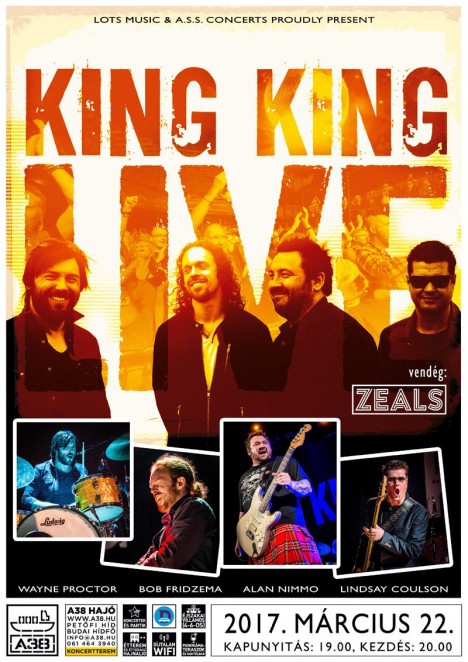Végre Magyarországon is bemutatkozik az utóbbi évek egyik legjobb brit blues-rock zenekara, a KING KING! Három nagysikerű stúdióalbummal a tarsolyában, március 22-én lép fel a kiváló gitáros/énekes Alan Nimmo vezette zenekar a budapesti A38 Hajón.