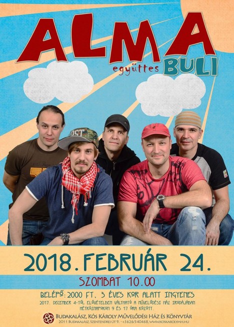 A Budakalászi Művelődési Ház népszerű családi programsorozatának ez évi nyitóepizódja február 24-én, szombaton lesz. Az esemény sztárvendége a gyerekközönség nagy kedvence, az Alma Együttes délelőtt 10 órakor lép majd színpadra!