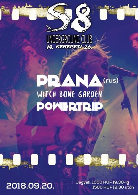 Szeptember 20-án Budapesten, az S8 Underground Clubban játszik az orosz grunge trió, a PRANA. A kilencvenes évek elejének seattle-i nagy-négyesén szocializálódott zenekar ügyesen keveri a Nirvanás alapokat a modernebb, metálosabb, huszonegyedik századi Foo Fighters-es vonallal. Teszi mindezt úgy, hogy a banda élén nem egy klasszikus grunge arc, hanem egy karcos hangú, ízig-vérig vad rocker csaj, Natasha áll.