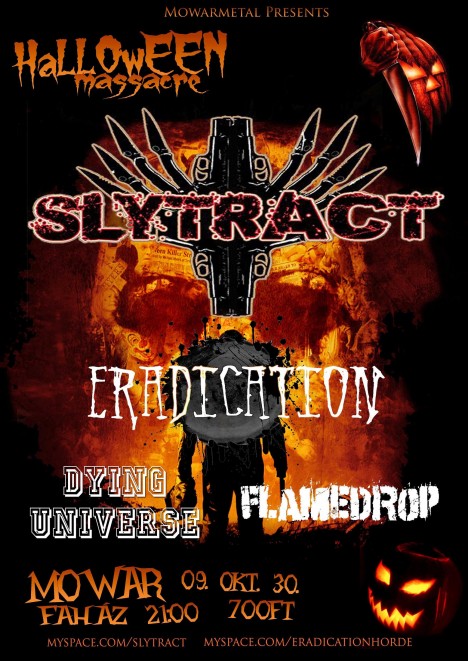 A miskolci véresszájú hordát, a SLYTRACT-et szerintem senkinek nem kell bemutatni. Tavalyi Explanation: Unknown lemezük mindenhol remek kritikákat kapott és hamarosan jön a folytatás, így nem kizárt hogy új számok is lesznek a repertoárban, de a régiekre fognak igazán törni a fejek és hullani a fogak! THRASH! www.myspace.com/slytract