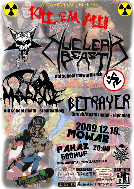 3 véresszájú horda fogja elhozni az apokalipszist ezen a sötét thrashtén! Az első csapást a répcelaki BETRAYER méri majd a helyre, gyors és kemény thrash/death metaljuk biztos ököllel veri ki majd a fogakat! A szombathelyi MORGUE folytatja majd a pusztítást, old school vonalas gyilkoló death metaljuk törést okozhat a csontoknak! A hódítást a mowar-i old school thrasher NUCLEAR BEAST fejezi be és teszik magukévá az elhullottakat! Mészárlás garantált!
