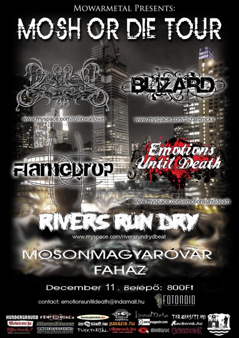 Beköszöntött a hideg, így itt az ideje, hogy forralt bort vegyünk a kezünkbe és 2009. december 11-én pénteken végigsétálva a Wittman Parkon eljussunk a Faházig, ahol további remek italok kíséretében végig nézhetünk öt arcletépő bandát, ugyanis a Mosh Or Die! tour Mowar-ra is eljut hogy láncba verje azt!
