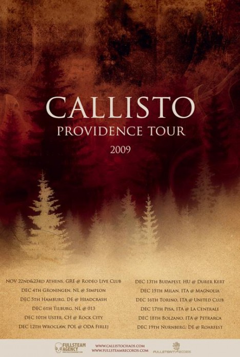 2009. december 13-án vasárnap az európai poszt-metál hullám egyik legmeghatározóbb zenekara debütál hazánkban. A finn Callisto idén megjelent Providence című nagylemezét bemutató, hasonló nevet viselő Európa-turnéjának budapesti állomására kerül sor ezen a napon a Dürer-kert kistermében. A "hagyományosnak tekinthető" poszt-metál témákat dark-jazzes elemekkel és tiszta énekkel megbolondító, időnként már-már a prog.-rock irányába elmozduló finn zenekar koncertjének vendégei és egyben nyitó zenekarai a győri Pozvakowski és a szabadkai Hton lesznek.