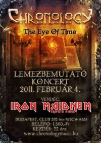 Mint tudjuk, a rock örök, és halhatatlan. És így van ez a heavy-metállal is. Erre újabb ékes bizonyíték, hogy az idén, megjelenésének 25. évfordulóját ünneplő egyik legnépszerűbb Maiden album, a Somewhere In Time előtt tisztelegve turnézik a hazai Maiden, azaz a jól ismert Iron Maidnem. A véletlen folytán pedig a Maiden-ünneppel egybe esik a magyar tribute csapat saját albumának megjelenése is, saját slágereivel, ami pedig végképp jó apropó egy ereszd el a hajam bulira. A Maidnem zenekarral csaknem azonos tagságot magáénak tudó project neve Chronology, az album, pedig ismét utalva a metál örökkévalóságára és borzongató fantáziavilágára, a The Eye Of Time címet kapta.