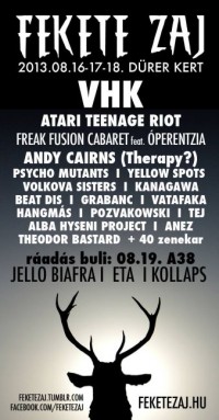Bár az idei Fekete Zaj Fesztivál helyszíne megváltozott a korábbiakhoz képest, vannak azért fix pontok: ilyen a VHK koncertje, hiszen Grandpierre Atilla és zenekara ezúttal is játszik a fesztiválon, augusztus 17-én, méghozzá idén utoljára a fővárosban. Előttük és utánuk a magyar underground klubélet meghatározó bandái játszanak, köztük a Psycho Mutants, az Alba Hyseni Project, a Kobza Vajk Group (a német Thomas Gundermannal kiegészülve), a Pozvakowski és a The Moon and the Nightspirit. Az este végén a nagyteremben az „orosz Dead Can Dance”, azaz a Theodor Bastard zenél.