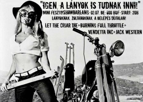 Különleges nőnapi zúzdára készül a Let the Cigar Die és a Burning Full Throttle csapata a Vendetta Inc. elnevezésű metálformációval. Tervük, egy fémes, hajrázós minifesztivál, mely a nőnap kedvéért az „Igen, a lányok is tudnak inni!" nevet kapta.