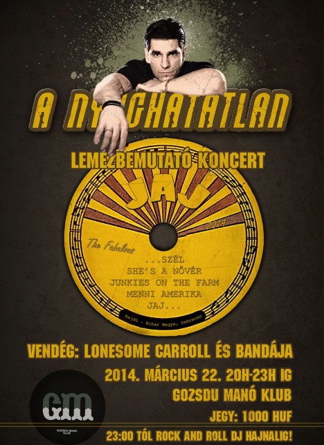 A Johnny Cash nyomdokain induló csapat első saját ihletésű albumát kínálja. Az egykori legenda most azonban kétszeresen is múzsának számított a lemez munkálataiban, hiszen a nagy kedvenc Big river mellett a zenekar saját nótáira is nagy hatást gyakorolt a rockabillys vonal – erre a korongra ugyanis már a hat tagú együttes saját gondolatai is felkerültek megzenésítve. A Nyughatatlan Jaj című albuma, a két angol, és három magyar nyelvű dala így már nem csak a hatvanas évek hangulatáról, hanem a zenészekről is szól.