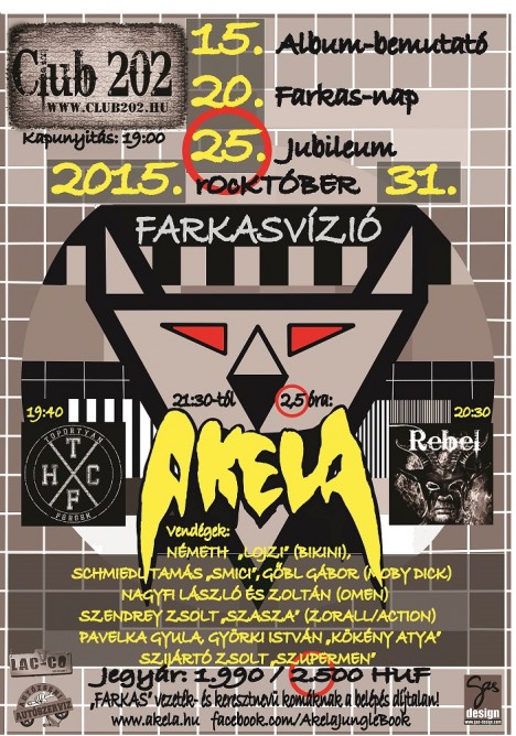 Az idén 25 éves Akela zenekar rOcktóber 31-én jubileumok sokaságát ünnepli a Club 202-ben! Ami apropó csak elképzelhető, az most mind együtt-van!