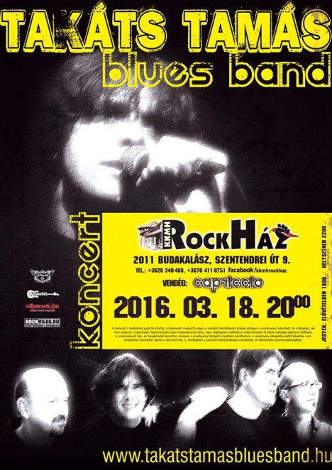 Pocsolyába léptél, és sáros lett az új cipőd? Ha így érzel, vagy csak ismerős a régi nóta, akkor várunk nosztalgiázni. Izgalmas időutazásra invitálunk: március 18-án ugyanis Takáts Tamás és zenekara, azaz a Takáts Tamás Blues Band lesz a városszéli rock klub vendége. A Karthago és East zenekarok énekese jól ismert, "retro" slágerekkel, hangulatos, bizsergető, táncolni való dallamokkal készül. Vendég a Capriccio csapata lesz.