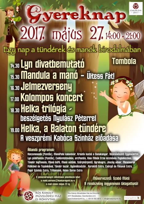 Ha szereted a manókat, tündéreket és te is szeretnél a bőrükbe bújni, gyere el jelmezbe és versenyezz! A jelmezversenyen értékes nyereményeket lehet nyerni! A jelmezversenyre előregisztárlni a a makk.adrienn@koskroalmyh.hu-s e-mail címen lehet május 22. hétfőig.