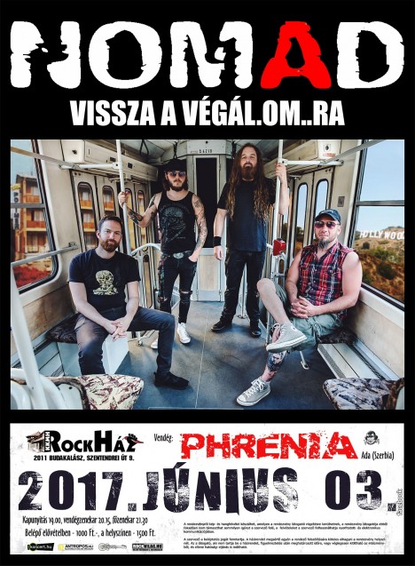 A RockHáz színpadára szezonzáróként és persze egyben nyárindítóként a Nomad zenekar érkezik, június 3-án szombaton. A Márványmenyasszony turné keretében Budakalászon vendégeskedő zenekar 21:30-kor csap majd a húrok közé, előtte pedig egyenesen Szerbiából, a Phrenia csapata melegíti a hangulatot.