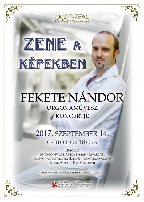 Fekete Nándor orgonaművész fotóvetítéssel egybekötött összművészeti látványkoncertje, 2017. szeptember 14-én csütörtökön 18 órától, a művelődési ház Báltermében látható és hallható. A többszörösen nívódíjazott, kiváló zeneakadémiai diplomát szerzett előadónak - Európa legmodernebb szállítható koncertorgonájával a birtokában - több száz telt házas, nagy sikerű templomi, rendezvénytermi és szabadtéri hangverseny fűződik már a nevéhez.