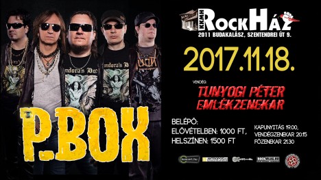 November 18-án szombaton a budakalászi RockHázban a debreceni P.Box zenekar lép színpadra. A magyar rockzene meghatározó bandája előtt a nagyon tehetséges Tunyogi Péter Emlékzenekar idézi meg a felejthetetlen Tunyó munkásságát, miután fotókkal színesített rocktörténeti kalandozás keretében emlékezünk a legendás énekesre.