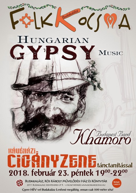A Budakalászi Folkkocsma elnevezésű eseménysorozat minden egyes epizódja egy-egy népcsoport, egy-egy kulturális régió muzsikáját, hangulatát idézi meg - alakult már az elmúlt hónapokban délszláv táncházzá, ír kocsmává, és bolgár fesztivállá is a Faluház színházterme. A zenei világutazás hagyománya folytatódik: február 23-án pénteken a kávéházi cigányzene műfaja lesz terítéken. A zenehallgatás mellett pedig a kultúrkör jellegzetes táncaiba is belekóstolhat minden érdeklődő! A talpalávalót a Khamoro Budapest Band szolgáltatja majd.