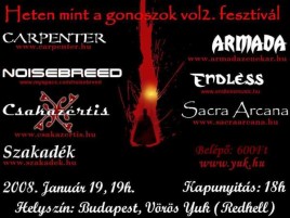 Heten, mint a gonoszok!Pajtás! Lassan úgy érzed, hogy az életed szakadék szélén táncol? Bármit teszel, csak azért is másképpen alakul, mint ahogy tervezted? Úgy érzed, mintha a Spanyol armada tört volna be a fejedbe és durrogtatnának a rohadt ágyuikkal? Tudod, hogy mi kell neked? Egy nagyon jó rock n roll buli! Sõt, jobbat mondok! Hét nagyon jó rock n roll buli! Ezt most megkaphatod nyavajás 500 forintért a Vörös Yukban.