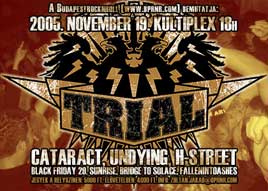 A seattle-i Trial 6 éve oszlott fel egy kemény és helyenként megviselő Európa turné után. Az elmúlt időkben a zenekar kultusza folytonosan nőtt, és évről-évre felröppent egy-egy reunion koncert híre. Végül idén megtört a jég és egy ugyan eddig sohasem látott felállásban (a reunion koncertek dobosa ugyan feldobolta az Are These Our Lives nagylemezt, de élőben nem játszott még a zenekarral. A tagok jelenleg olyan zenekarokban játszanak, mint a 3 Inches Of Blood, a Between Earth And Sky, vagy a Wait In Vain és egykori tagjaik egy része a Himsa-t alapította meg pár éve) a zenekar újjáalakult 3 koncert erejéig.