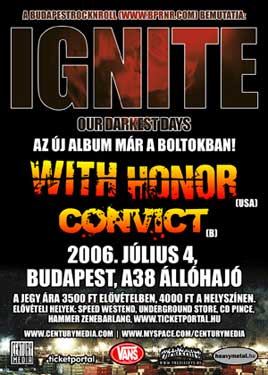 Ignite (USA), With Honor (USA), Convict (B)Kapcsolódó zenekarok:Kapcsolódó koncert: