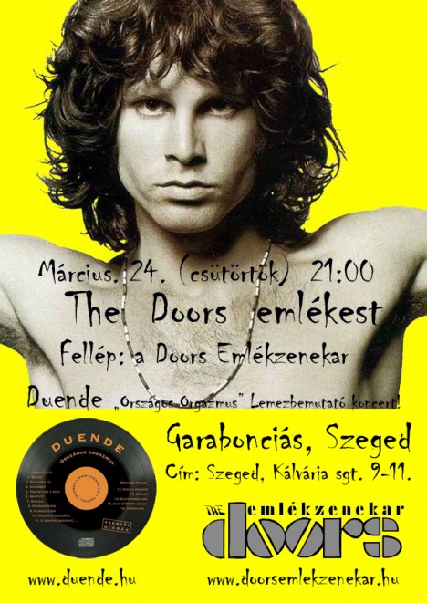 Szegeden ismét Duende „Országos Orgazmus” Lemezismertető koncert, majd utána The Doors emlékest…